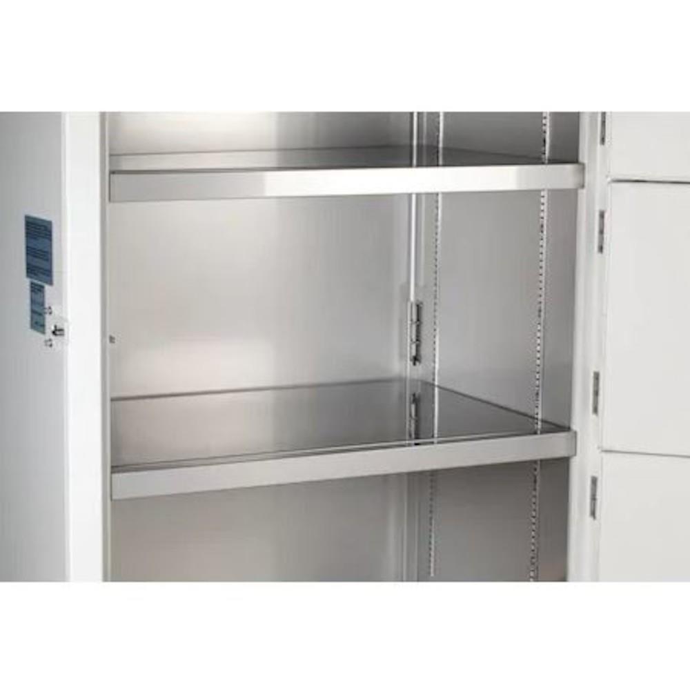Stainless steel interior for easy cleaning during maintenance and defrost cycles; powder-coated steel exterior